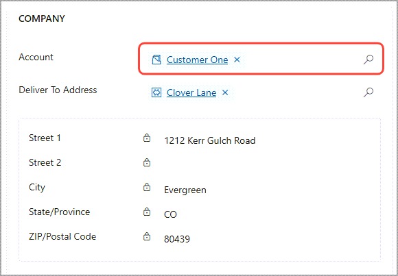 5. Select an Account to track the lead against an existing prospect or customer. You can optionally select a Deliver To Address to associate with the lead.